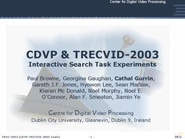 1CDVP TRECVID-2003Interactive Search Task