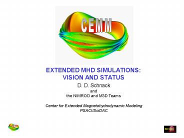 <Notice: Removed> EXTENDED MHD SIMULATIONS: VISION AND STATUS PowerPoint PPT Presentation
