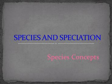 1SPECIES AND SPECIATION