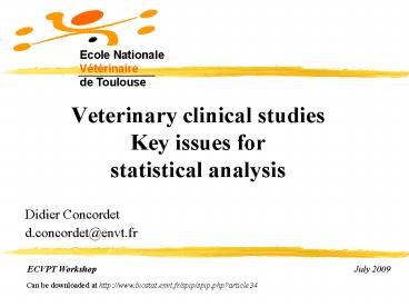 <Notice: Removed> Veterinary clinical studies Key issues for statistical analysis PowerPoint PPT Presentation