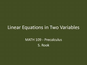 <Notice: Removed> Linear Equations in Two Variables PowerPoint PPT Presentation