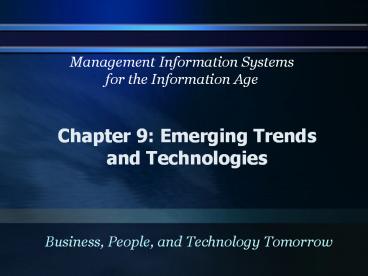 <Notice: Removed> Chapter 9: Emerging Trends and Technologies PowerPoint PPT Presentation