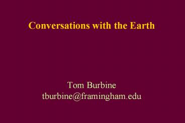 Conversations with the Earth Tom Burbine tburbine@framingham.edu PowerPoint PPT Presentation