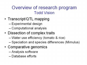 <Notice: Removed> Overview of research program Todd Vision PowerPoint PPT Presentation