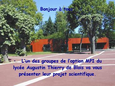 1 Bonjour à tous. Lun des groupes de