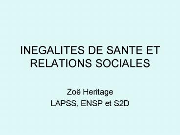 INEGALITES DE SANTE ET RELATIONS SOCIALES PowerPoint PPT Presentation