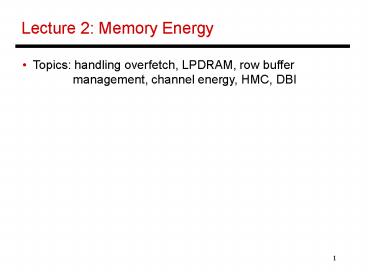Lecture 2: Memory Energy PowerPoint PPT Presentation