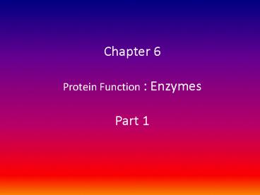 Title: Chapter 6 Protein Function : Enzymes Part 1