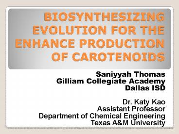 <Notice: Removed> BIOSYNTHESIZING EVOLUTION FOR THE ENHANCE PRODUCTION OF CAROTENOIDS PowerPoint PPT Presentation