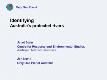 protected area I-IV). - upper catchment undisturbed, no major dams