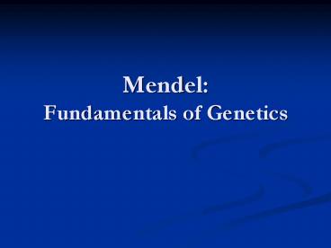 Mendel: Fundamentals of Genetics PowerPoint PPT Presentation