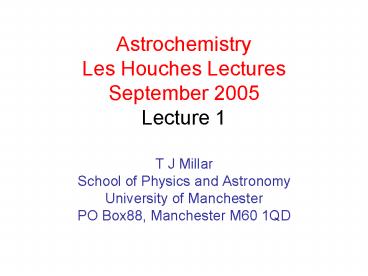 Title: Astrochemistry Les Houches Lectures September 2005 Lecture 1