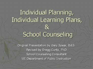 <Notice: Removed> Individual Planning, Individual Learning Plans, PowerPoint PPT Presentation
