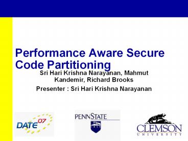<Notice: Removed> Performance Aware Secure Code Partitioning PowerPoint PPT Presentation
