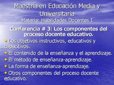 • O. I ---gt O. C. El dominio de la habilidad deja