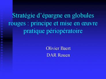 1Stratégie dépargne en globules rouges principe