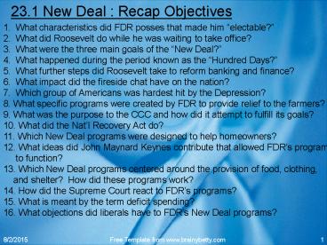attempt to fulfill its goals? - 10. What did the Natl Recovery Act do?