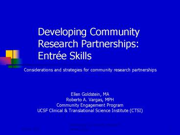 <Notice: Removed> Developing Community Research Partnerships: Entr PowerPoint PPT Presentation