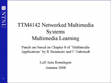 <Notice: Removed> TTM4142 Networked Multimedia Systems Multimedia Learning PowerPoint PPT Presentation