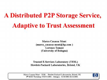 <Notice: Removed> A Distributed P2P Storage Service, PowerPoint PPT Presentation
