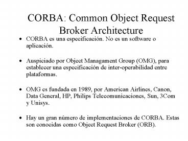 • CORBA es una especificación. No es un software o