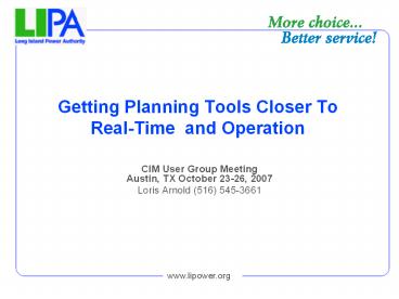 <Notice: Removed> Getting Planning Tools Closer To Real-Time and Operation PowerPoint PPT Presentation