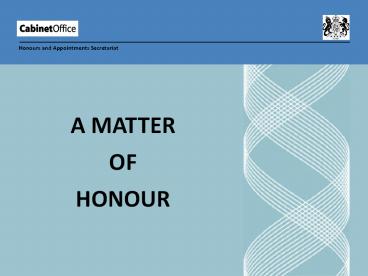 A MATTER OF HONOUR