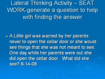 <Notice: Removed> Lateral Thinking Activity PowerPoint PPT Presentation