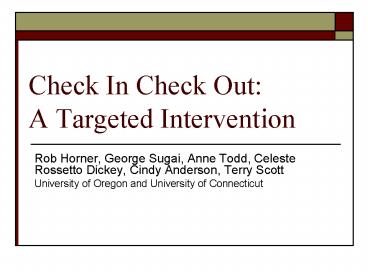 Title: Check In Check Out: A Targeted Intervention