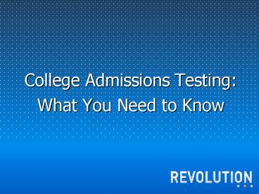 <Notice: Removed> College Admissions Testing: PowerPoint PPT Presentation