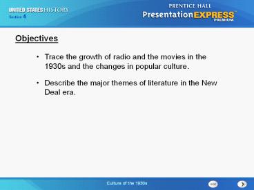 1930s and the changes in popular culture. - Describe the major themes of literature in the