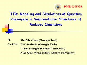 PI Mei-Yin Chou (Georgia Tech) Co-PIs Uzi