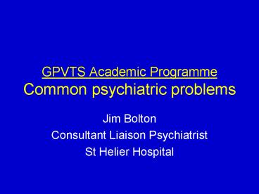 <Notice: Removed> GPVTS Academic Programme Common psychiatric problems PowerPoint PPT Presentation