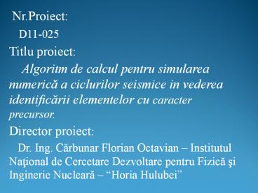 procesului seismic, cu consecinte extrem - de importante pentru economie, pentru evaluarea