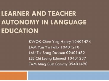 <Notice: Removed> Learner and Teacher Autonomy in language education PowerPoint PPT Presentation