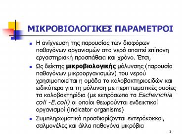 e?de??t???? ???a??sµ?? (indicator organisms) - S?µp????µat??? p??sd???????ta? e?te????????,