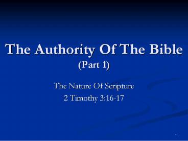 The Authority Of The Bible (Part 1) PowerPoint PPT Presentation