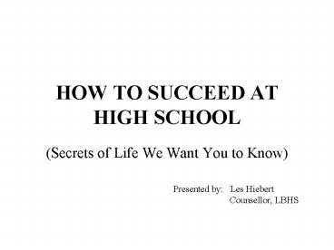 <Notice: Removed> HOW TO SUCCEED AT HIGH SCHOOL PowerPoint PPT Presentation