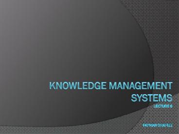<Notice: Removed> Knowledge Management Systems Lecture 6 Payman Shafiee PowerPoint PPT Presentation