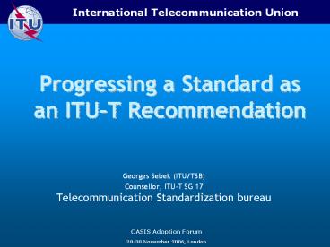 Title: Progressing a Standard as an ITU-T Recommendation