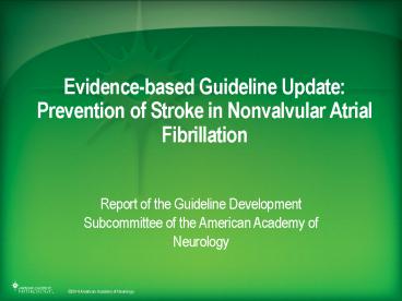 Title: Evidence-based Guideline Update: Prevention of Stroke in Nonvalvular Atrial Fibrillation