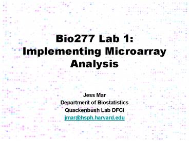 <Notice: Removed> Bio277 Lab 1: Implementing Microarray Analysis PowerPoint PPT Presentation
