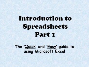 <Notice: Removed> Introduction to Spreadsheets Part 1 PowerPoint PPT Presentation