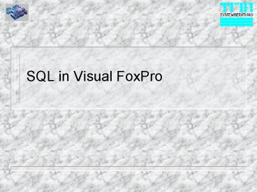 SQL in Visual FoxPro PowerPoint PPT Presentation