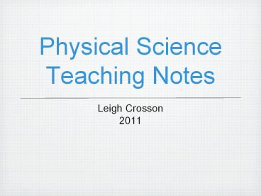 <Notice: Removed> Physical Science Teaching Notes PowerPoint PPT Presentation