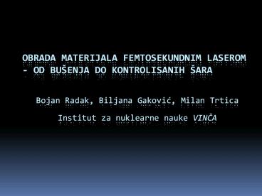 Title: Obrada materijala femtosekundnim laserom - od bu