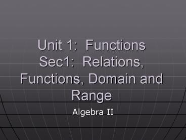 <Notice: Removed> Unit 1: Functions Sec1: Relations, Functions, Domain and Range PowerPoint PPT Presentation