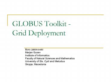 Title: GLOBUS Toolkit - Grid Deployment