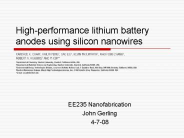 <Notice: Removed> EE235 Nanofabrication PowerPoint PPT Presentation