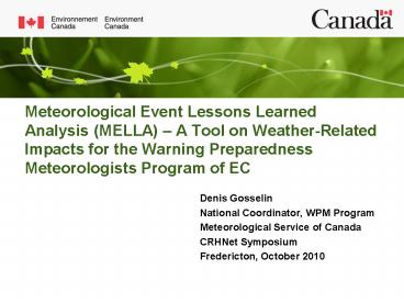 <Notice: Removed> Meteorological Event Lessons Learned Analysis (MELLA) PowerPoint PPT Presentation
